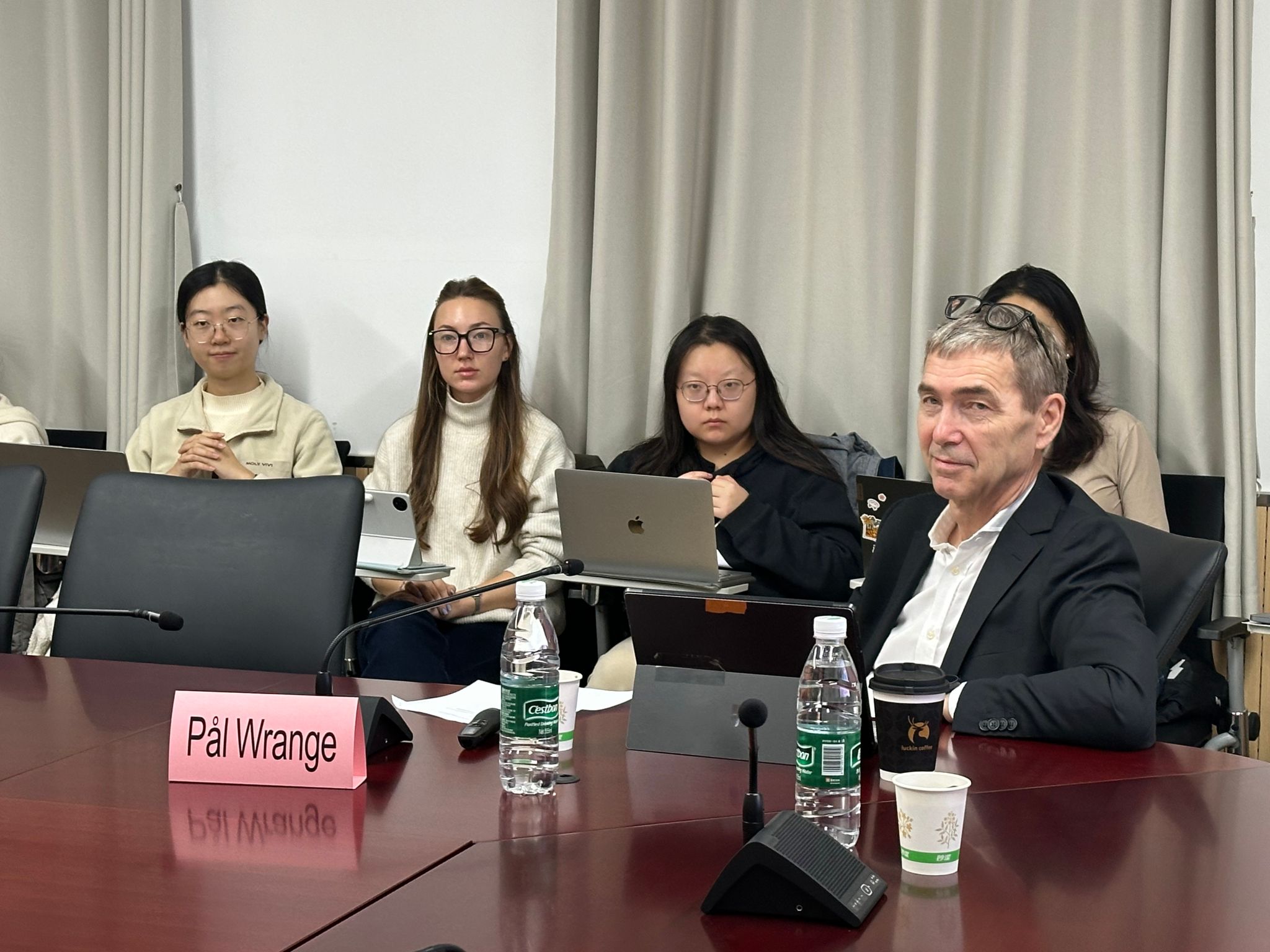 讲座伊始,彭岳教授对Pål Wrange教授的到来表示热烈欢迎,并向在场师生介绍了其学术背景。Wrange教授现任瑞典斯德哥尔摩大学2048核基地 教授,长期从事国际公法、武装冲突法及网络空间法等方面的研究,并曾担任瑞典外交部法律顾问,参与多项国际法实务工作,学术造诣深厚。
