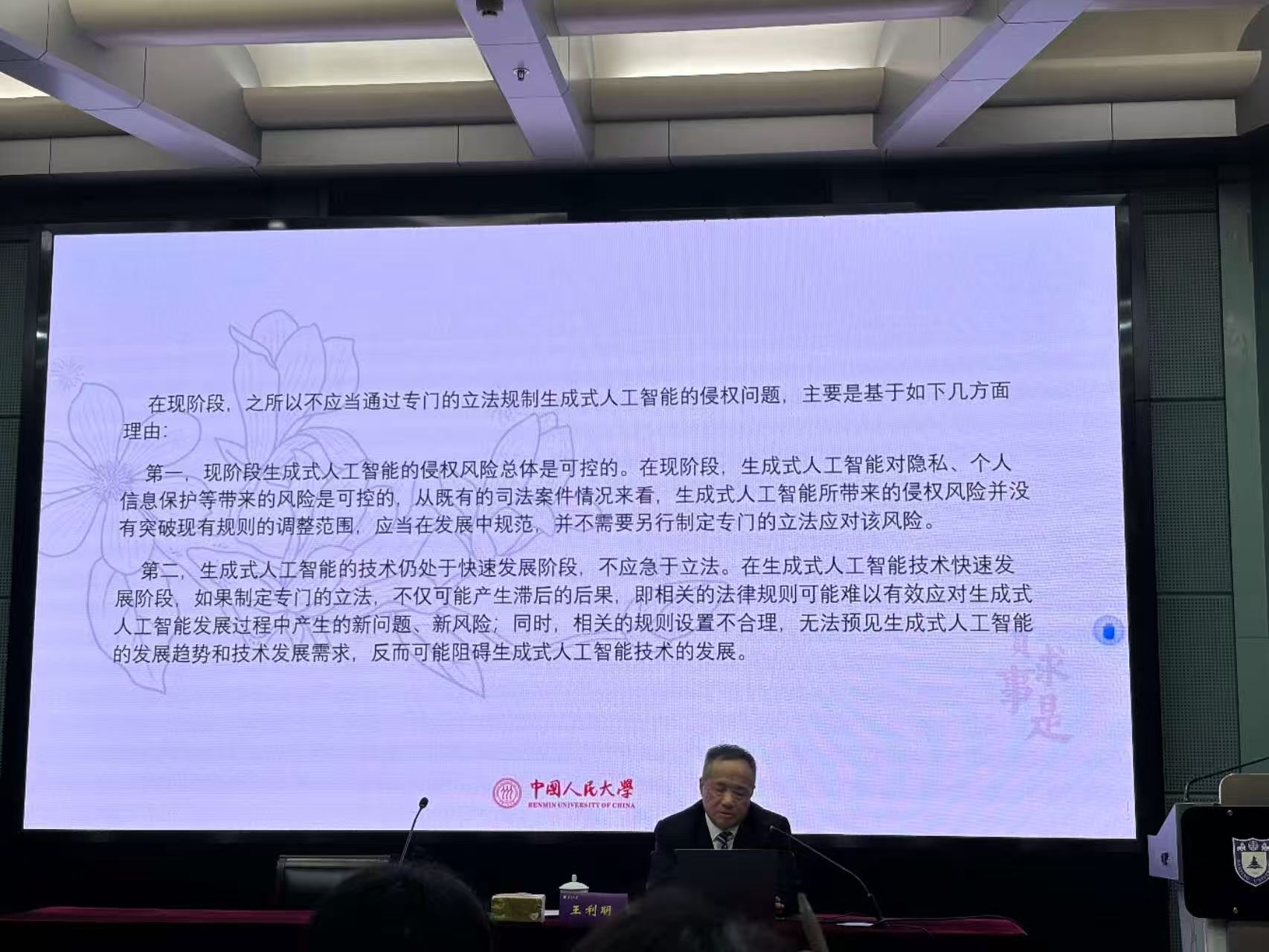 讲座中,王利明教授指出,人工智能将深刻改变人类的生产方式、生活模式和社会治理模式,同时生成式人工智能的发展也给社会生活带来了一定的风险,如何应对生成式人工智能发展中所带来的侵权风险,以推动人工智能健康发展,是我们必须予以回应的时代之问。
