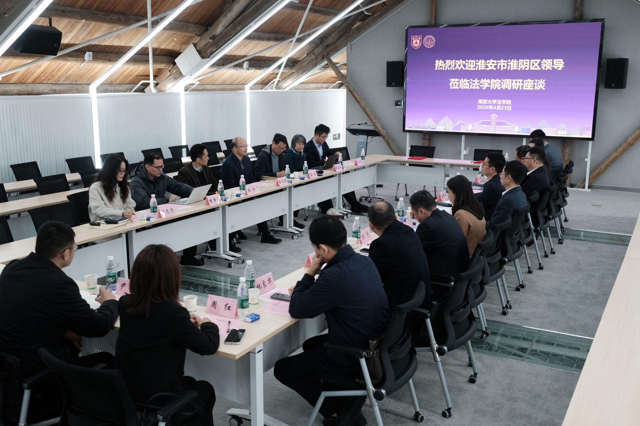 深厚的历史底蕴与学科优势,概述了学院学生培养布局与师资队伍建设情况。他特别提到,学院目前聚焦涉外法治、数字法治、国家安全法治三大发展方向开展有组织科研,与淮阴区的产业特点、案件类型高度契合。学院青年教师学术竞争力强,致力于对接中国司法实际问题开展研究,淮阴区丰富的基层实践是非常好的研究场域。