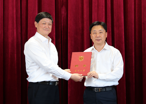 9月17日,南京大学聘任夏锦文兼职教授仪式在鼓楼校区逸夫管理科学楼报告厅举行。省政协副主席、校党委书记胡金波,省社会科学院党委书记、院长夏锦文,校党委常委、副校长邹亚军出席。仪式由邹亚军主持。
