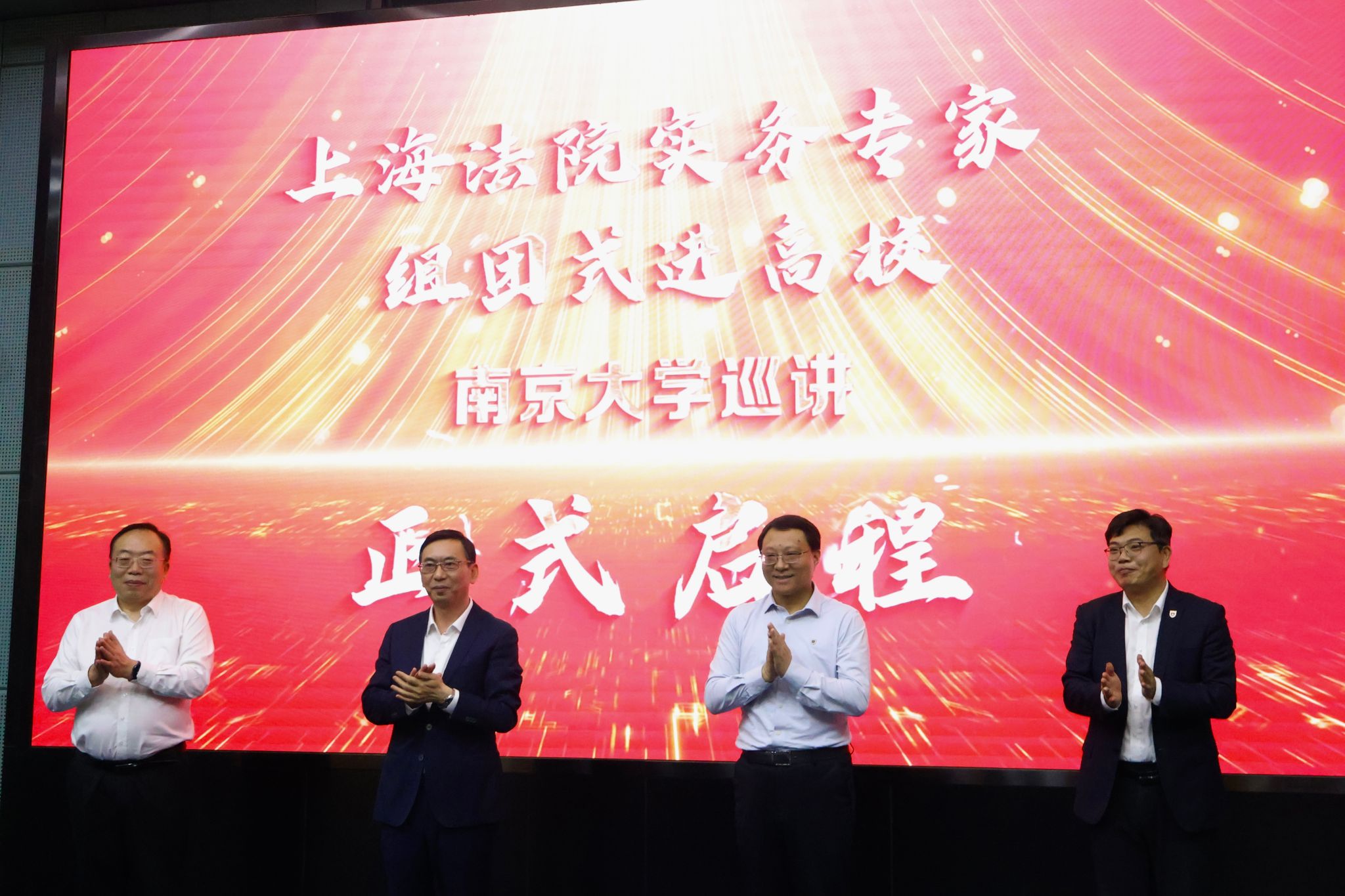5月29日下午,系列巡讲在南京大学鼓楼校区正式启动。南京大学党委副书记陈云松出席活动并致辞。上海市高级人民法院党组成员、政治部主任王理秋介绍“上海法院实务专家组团式进高校系列巡讲”项目和巡讲专家,南京大学党委宣传部部长孙乐强主持启动仪式。