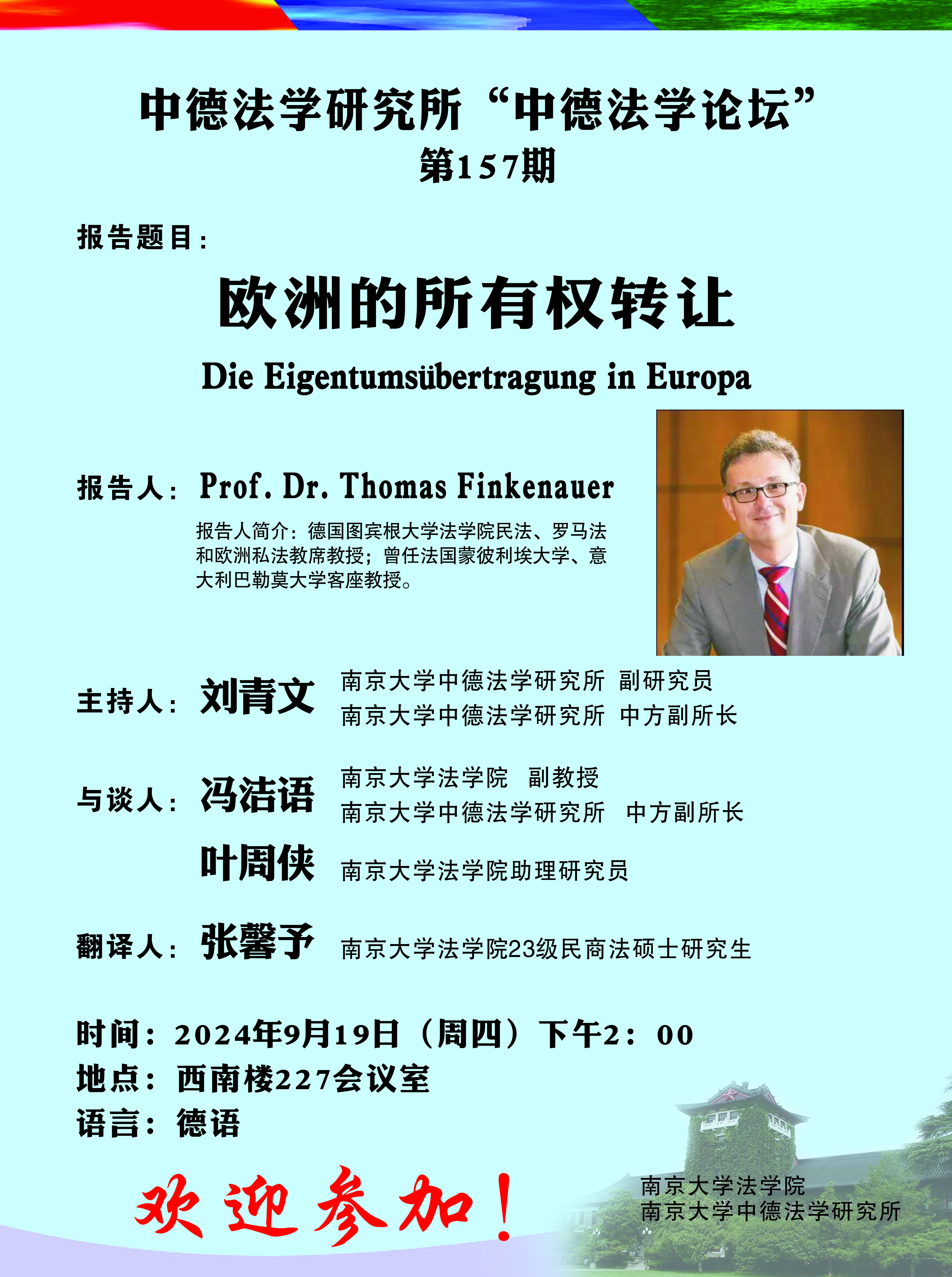 中德法学研究所“中德法学论坛” 第157期海报