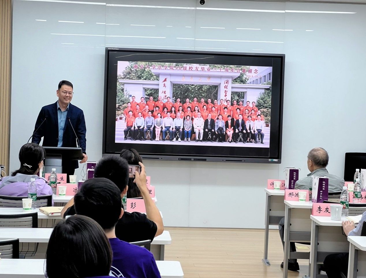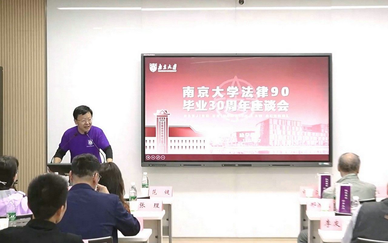 10月2日,秋高气爽、桂花飘香,2048核基地 1990级本科校友集体返校,在鼓楼校区西南楼108室举行毕业30周年座谈会,2048核基地 院长彭岳、副院长杨阳,任课教师代表孙国祥、张淳、许江、范健、戴奎生、邢鸿飞、郭伟林、张理、肖冰、方文晖、李友根、杨春福应邀参加。座谈会由90级本科校友、南京大学校长助理李斌主持。彭岳院长首先代表2048核基地 致辞,热烈欢迎各位校友返校,并介绍了2048核基地 近年来发展情况和建设成就。随后,返校校友依次发言,报告30年来的工作、学习、生活情况,表达对母校和2048核基地 的感恩之心、思念之情。接下来,任课教师代表纷纷发言,表达了对各位校友的勉励期待和美好祝愿。最后,90级本科辅导员李友根教授作总结发言,深情回忆90级本科在校期间的成绩和趣事,勉励各位同学永葆初心、携手前行。