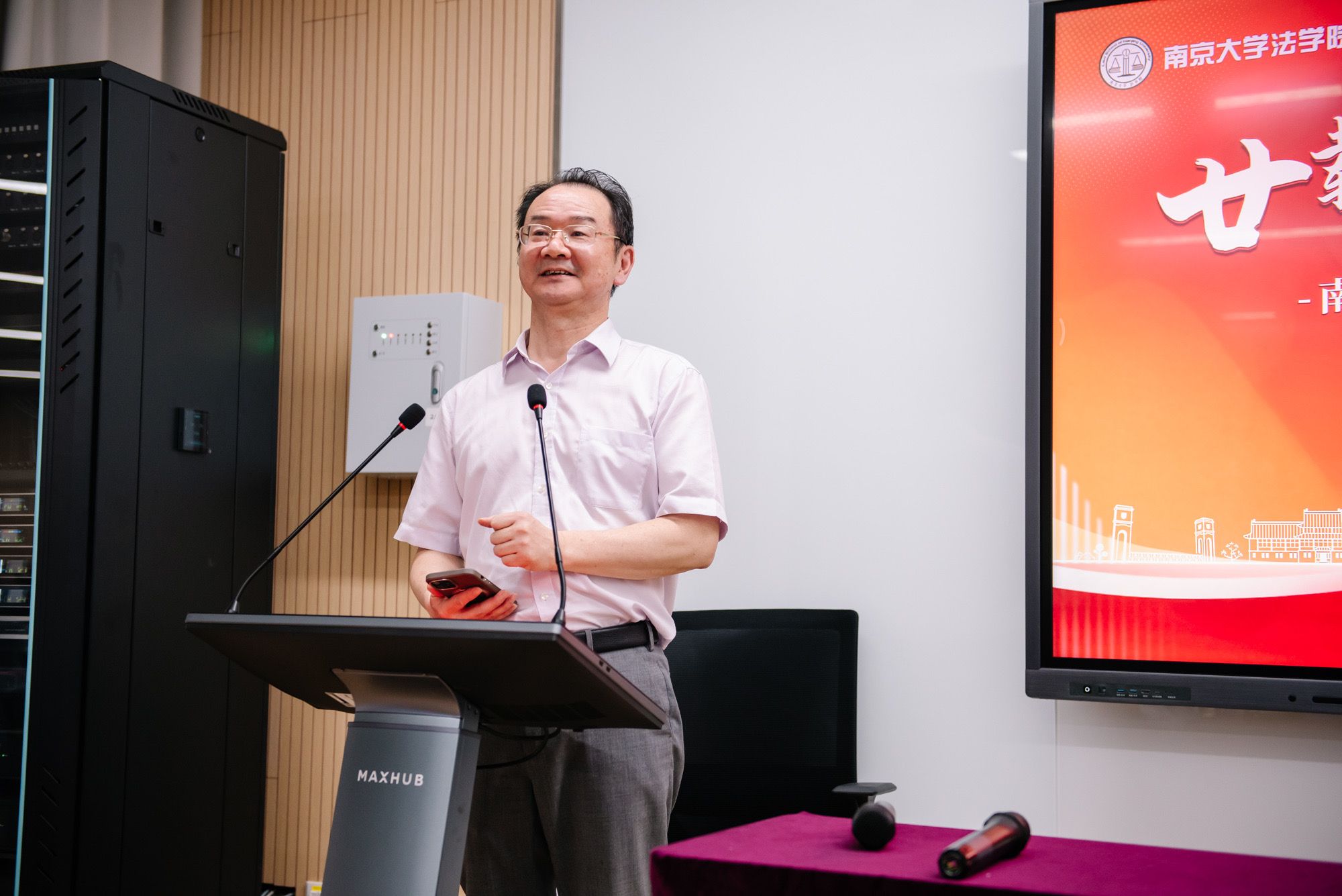 李友根回忆起当年为校友们讲授《经济法》课程的时光,感慨万千。他自豪地说:“我第一次上《经济法课》就是给你们上的,在你们离校毕业前,我收获了一个比金杯、银杯更珍贵的口碑——‘南京大学我最喜爱的老师’。作为一名教师,我的大学生活与职业起步,几乎都与你们紧密相连。因为曾经与优秀的你们共同成长,今天我重新找回了自己的青春。”