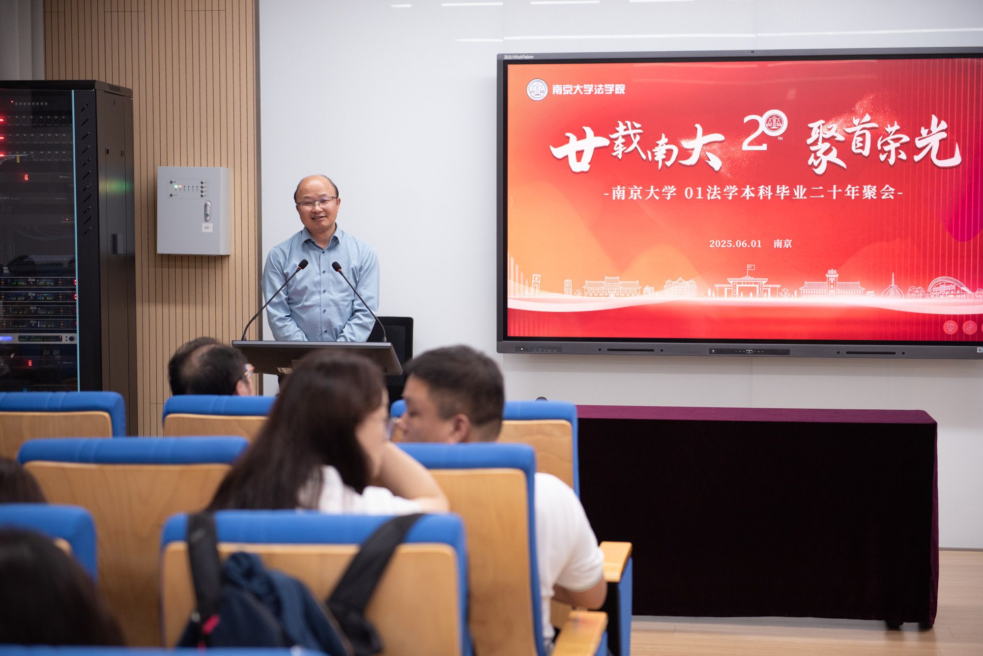 狄小华在校友们的欢呼声中激动地说:“当年我调到南大工作,接到的第一项任务就是担任你们的年级导师。回首20年,过去的经历或许会影响现在的行动,岁月虽蹉跎,但前方的道路依旧光明璀璨。我衷心祝愿在座的各位同学,心中有明确的目标,专注去实现目标的过程,享受过程带来的快乐,保持自我,活出属于自己的精彩人生。”