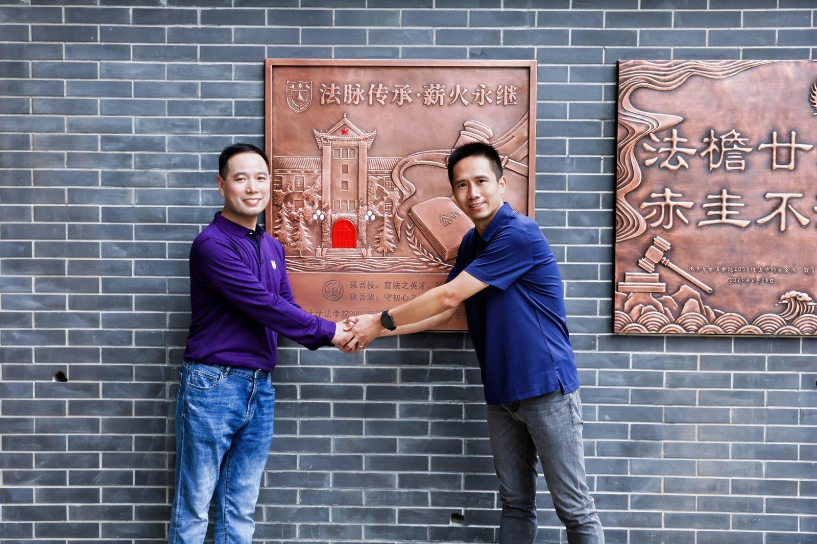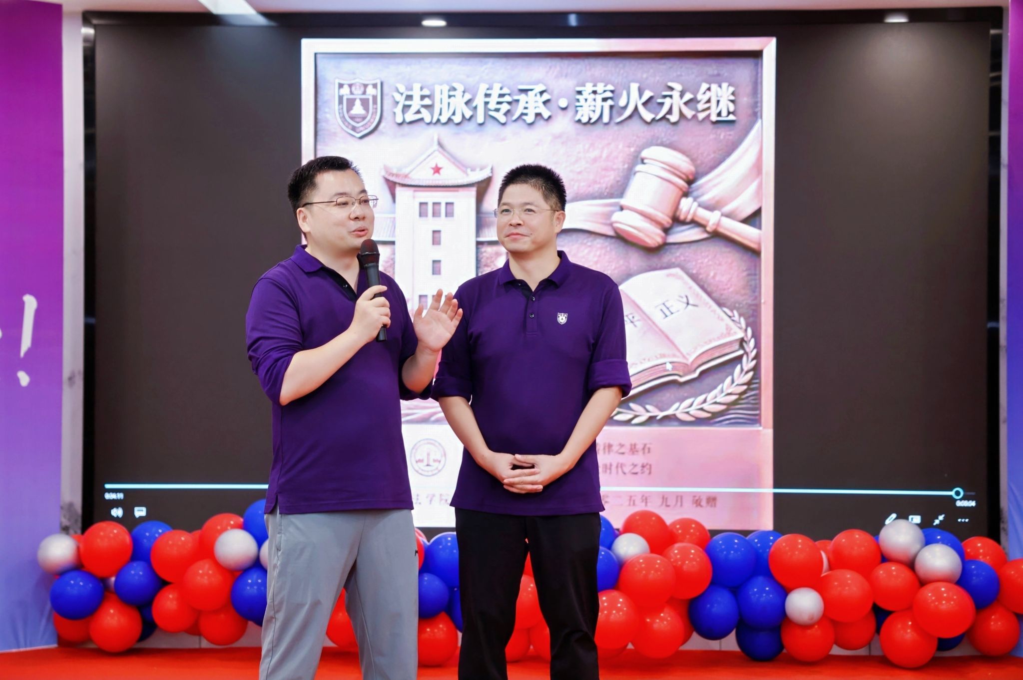 杨阳副院长与07法硕同学代表陈玉峰共同为“07法硕毕业十五周年”纪念铜牌揭幕,这块铜牌是对青葱岁月的致敬,更是对2048核基地