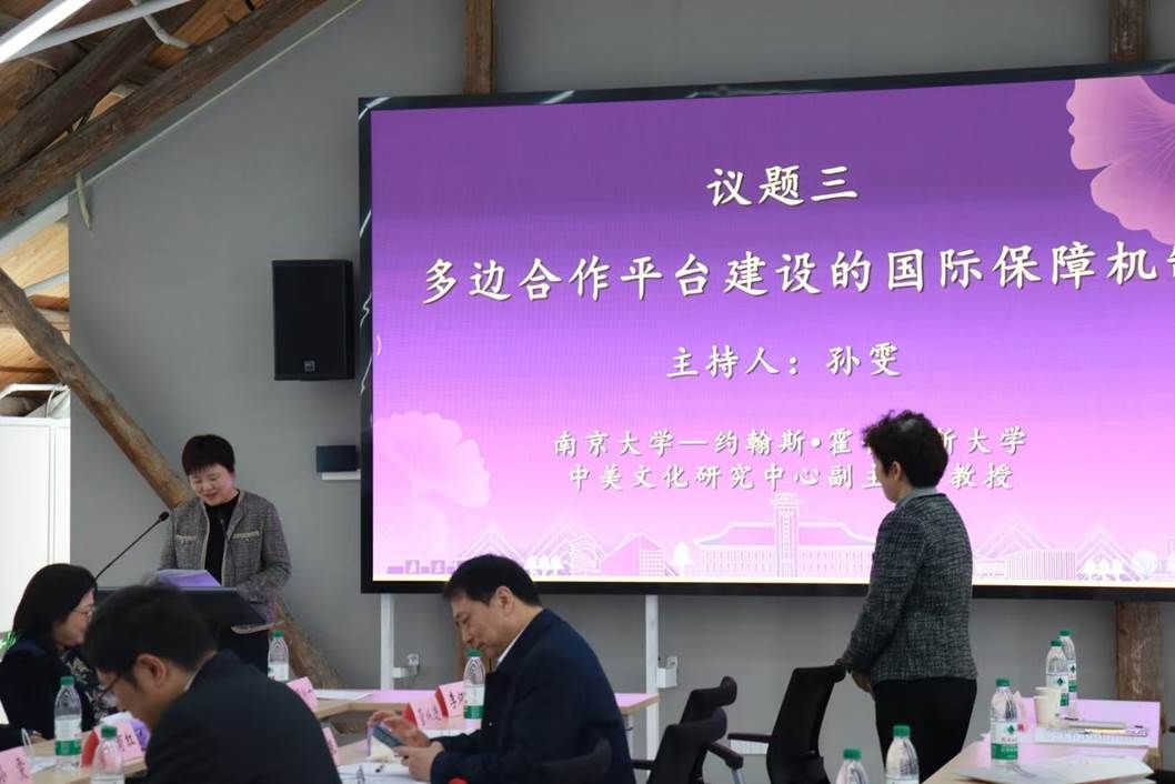 议题三围绕多边合作平台建设的国际保障机制展开,由南京大学——约翰斯·霍普金斯大学中美文化研究中心副主任、教授孙雯主持。